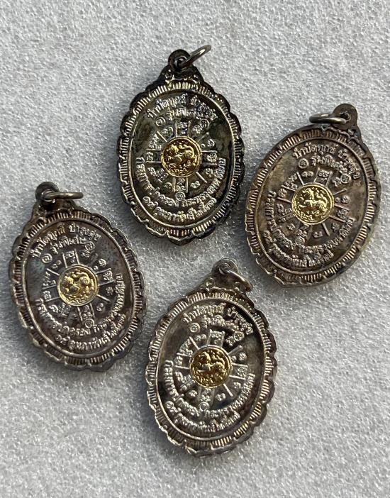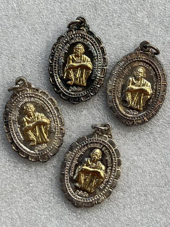 หลวงพ่อคูณ ปริสุทโธ วัดบ้านไร่ รุ่นกูรักมึง กะไหล่เงินหน้าทอง ปี2537 สร้างโดย กรมการปกครอง กระทรวงมหาดไทย สวยเดิม4เหรียญ |
