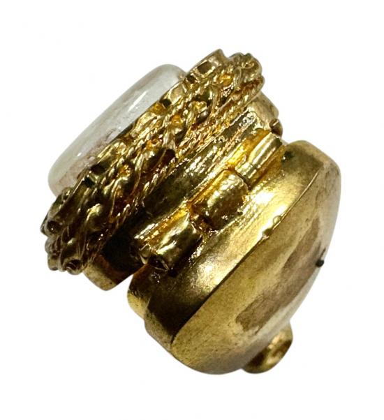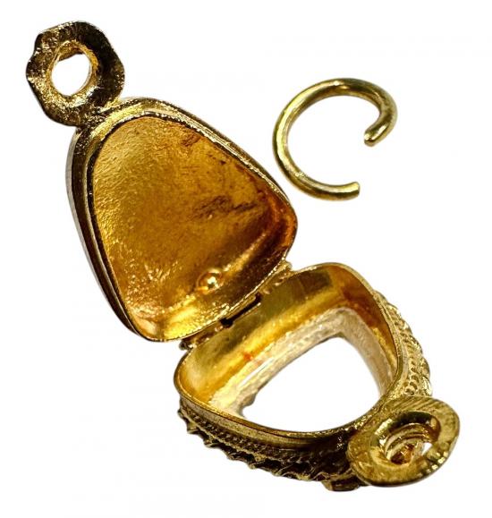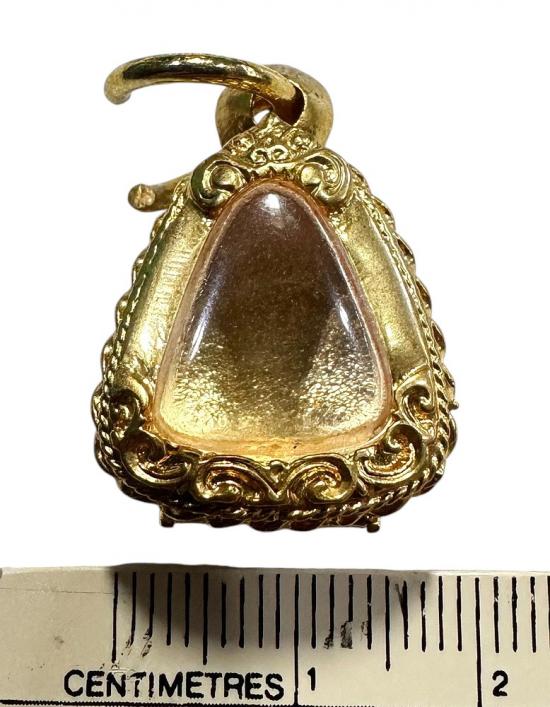 ตลับมือสองโลหะชุบทองหนาทรงสามเหลี่ยมใส่พระปิดตาจิ๋วได้ ขนาด 1.5 x 1.5 ซม. |