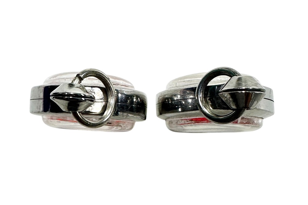 ตลับมือสองสแตนเลสรูปไข่ใส่เหรียญทั่วไป 2 ใบแบบเปิดหน้า-หลังขนาด 2.5 x 2 ซม.