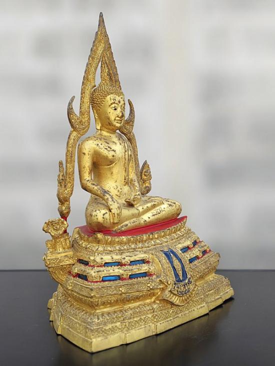 พระบูชารุ่นเสาร์ ปี54 หน้าตักเกือบ6นิ้ว ฐานกว้าง 9 นิ้วสูงรวมซุ้ม 13 นิ้วกว่า ปิดทอง ซุ้มถอดได้