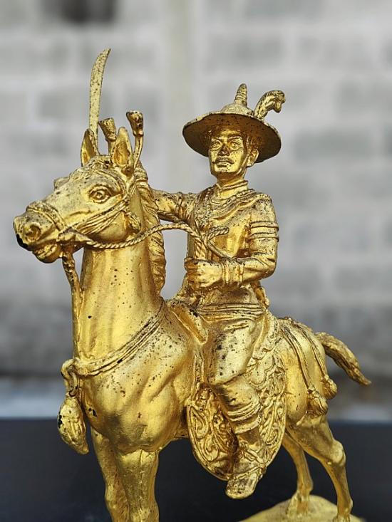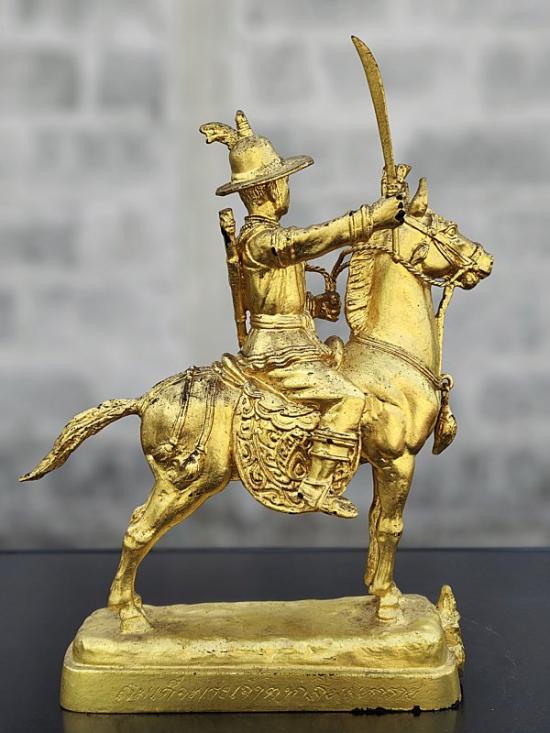 สมเด็จพระเจ้าตากสินมหาราช ทรงม้า ดาบถอดได้ วัดอินทราราม ปิดทอง