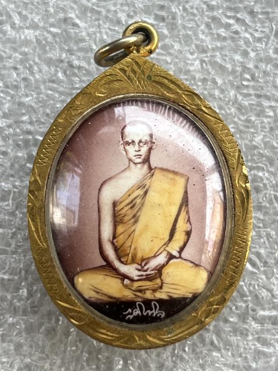 ล็อกเก๊ตทรงผนวช ร.๙ วัดบวรฯ"รุ่นบูรณะเจดีย์ ปี2550"ฉากชมพู เลี่ยมกรอบไมค่อน