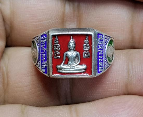รายละเอียด หลวงพ่อรวย วัดตะโก จ.อยุธยา   แหวนเนื้อเงินลงยา ปี53 Size 66