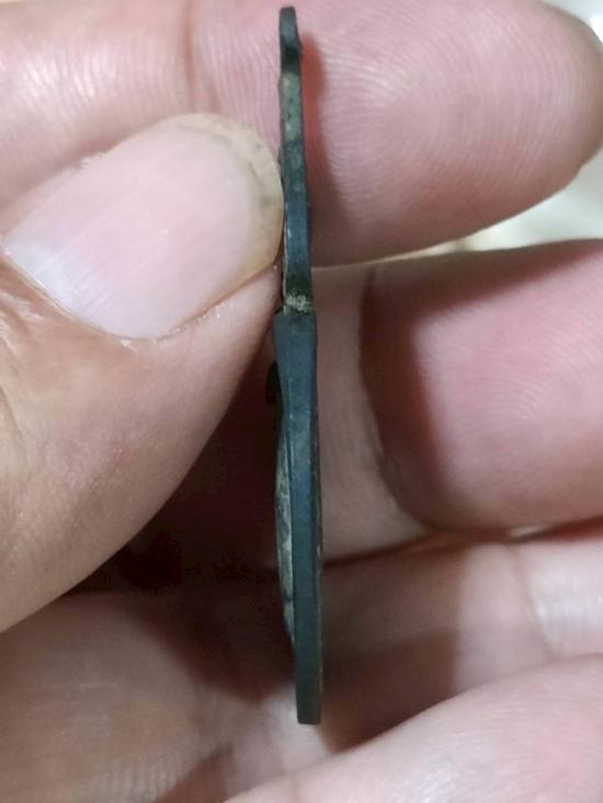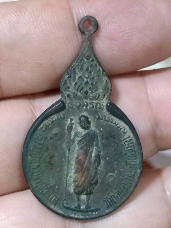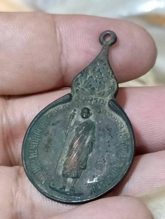 เหรียญยืนถือไม้เท้า รุ่นรวมใจ ( 5 แชะ ) หลวงปู่แหวน วัดดอยแม่ปั๋ง จ.เชียงใหม่ ปี 2518 ตอกโค๊ด