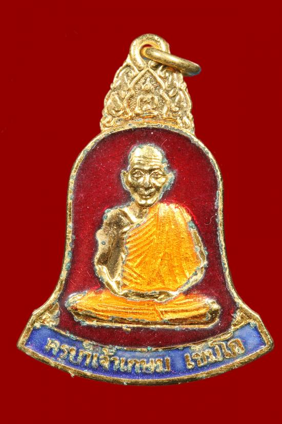 หลวงพ่อเกษม เขมโก วัดสุสานไตรลักษณ์ จ.ลำปาง ปี 38 เหรียญระฆํง กะหลั่ยทองลงยา กล่องเดิม |