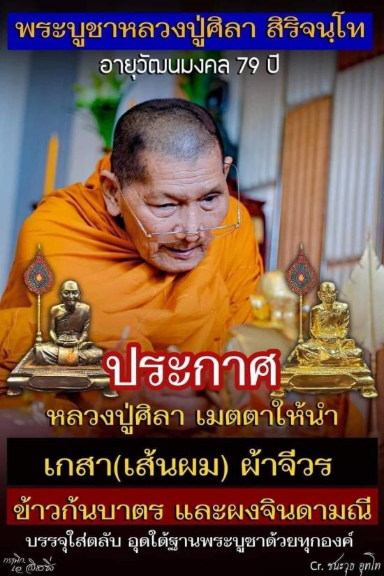 วัดใจ.พระบูชาประจำปีอายุวัฒนมงคล79ปี หลวงปู่มหาศิลา สิริจันโท(หลวงปู่ศิลา) เนื้อโลหะผสม สองสี หน้าตัก 5 นิ้ว ใต้ฐานอุด เกศา จีวรข้าวก้นบาตร ผงจินดามณี. บูชาที่บ้าน ร้านค้าดีนักแล