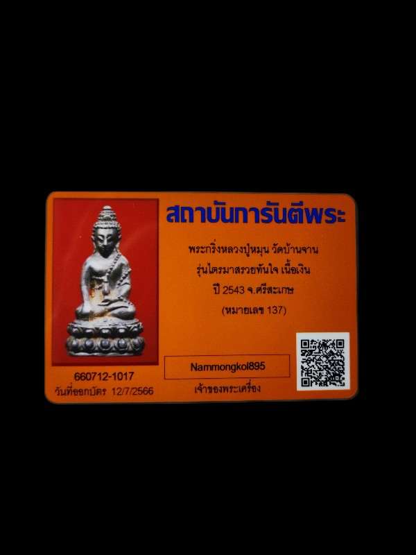 1 ใน 199 องค์ พระกริ่งหลวงปู่หมุน วัดบ้านจาน รุ่นไตรมาสรวยทันใจ เนื้อเงิน ปี 2543 จ.ศรีสะเกษ (หมายเลข 137) นอนกล่องเดิม