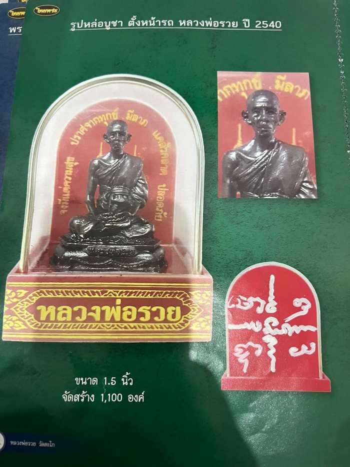 หลวงพ่อรวย วัดตะโก จ.อยุธยา พระบูชา 1.5" ตั้งหน้ารถ ปี 2540 หายาก มีจารด้านแผ่นหลัง