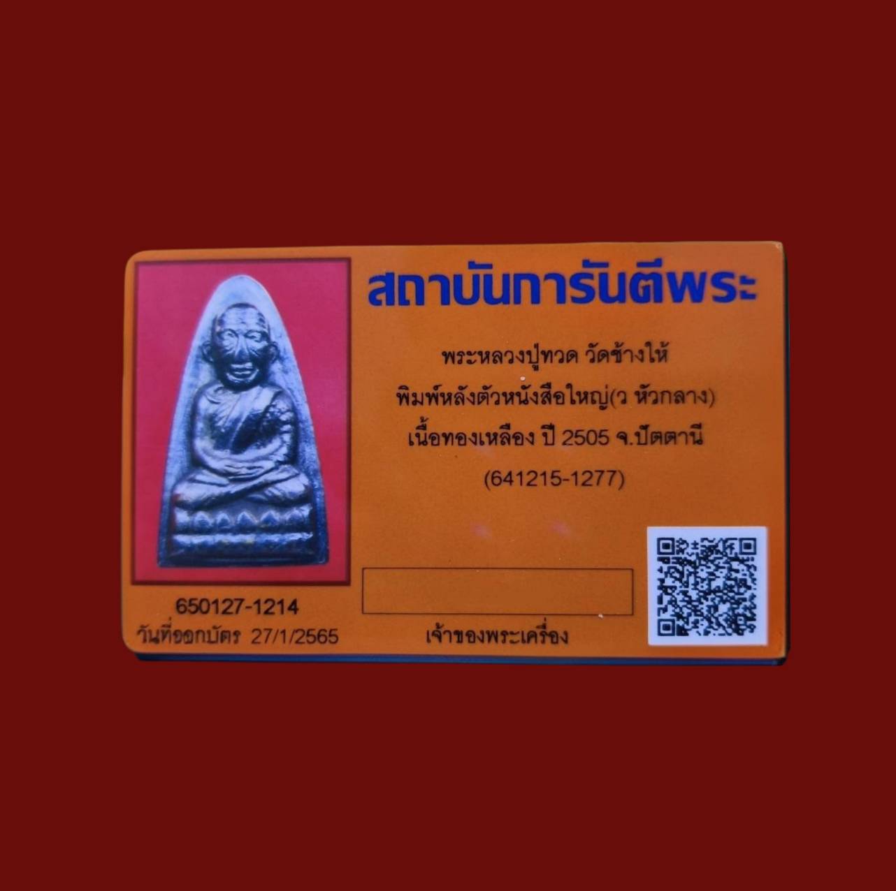 หลวงพ่อทวด พิมพ์หลังหนังสือใหญ่ หลังหนังสือ บล็อค วอ กลวง(พบเห็นนัอย) ปี2505 เนื้อทองเหลืองรมดำ สวยเดิม มาพร้อมรับรอง