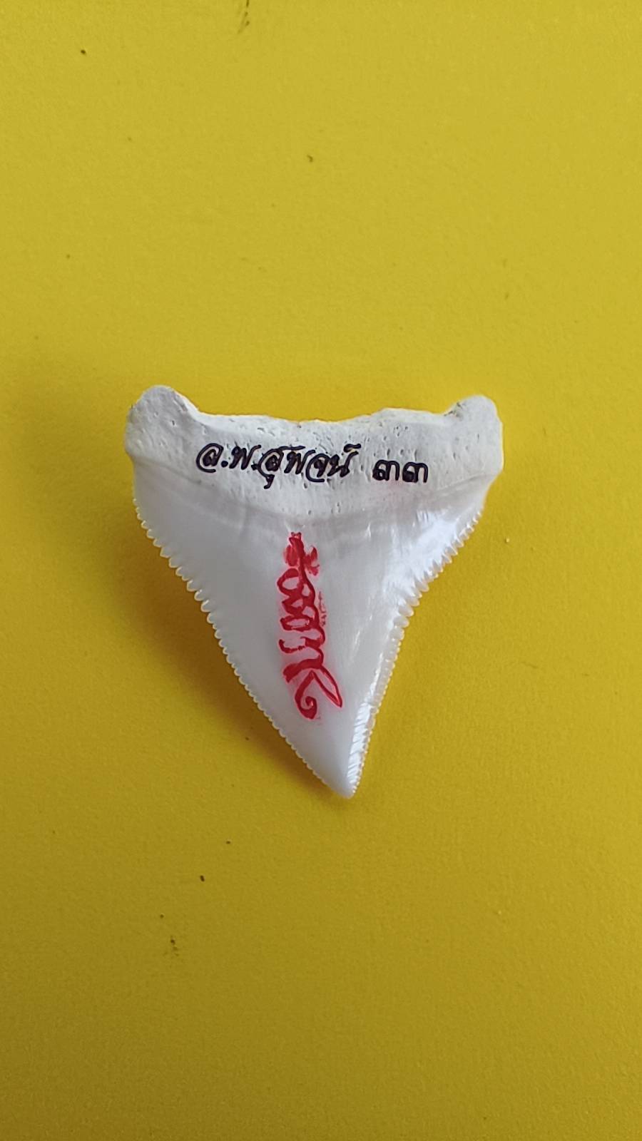 ฟันฉลามแกะหน้าเสือ รุ่น เสือเรียกทรัพย์ ลพ.สุพจน์ วัดห้วงพัฒนา จ.ตราด หมายเลข "33" พร้อมกล่องเดิมจากวัด สร้างน้อยแค่ 59 ชิ้น