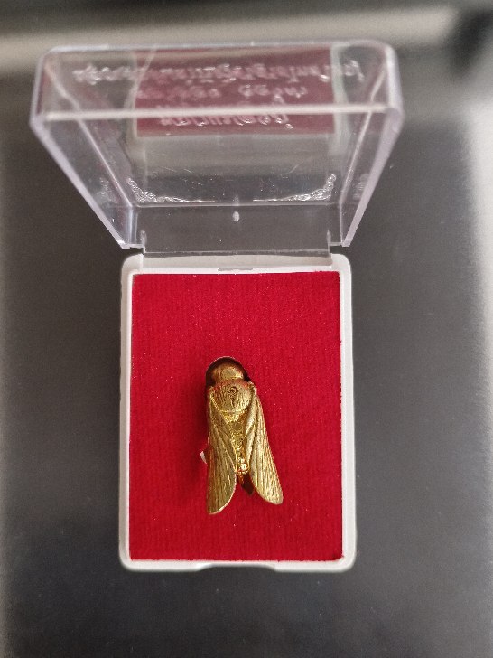 พญาแมลงภู่คำ ครูบาสล่าอ่อง จองคำ เนื้อโลหะ พร้อมกล่องเดิม ปลุกเสกต้นตำรับวิชาสายไทยใหญ่ สวยๆ เข้มขลัง