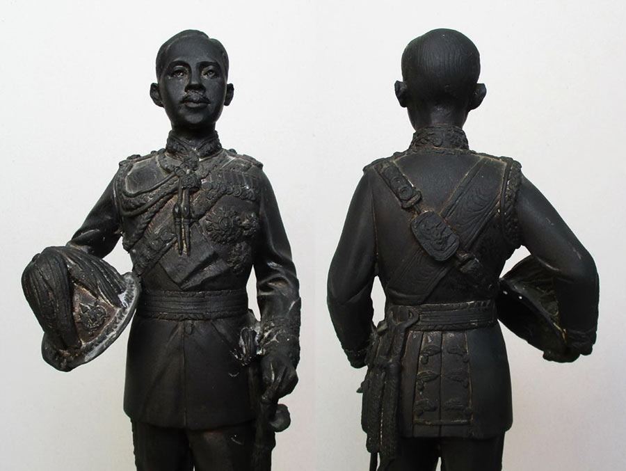 บรมรูปบูชา จอมพล สมเด็จพระเจ้าบรมวงศ์เธอ เจ้าฟ้าจักรพงษ์ภูวนารถ ( ต้นราชสกุล จักรพงษ์ ) ครบรอบ 81 ปี โรงเรียนเสนาธิการทห ารบก 3 เม.ย. 33 เนื้อโลหะรมดำมันปู ผิวหิ้ง สูงรวมฐาน 15.2 นิ้ว !!