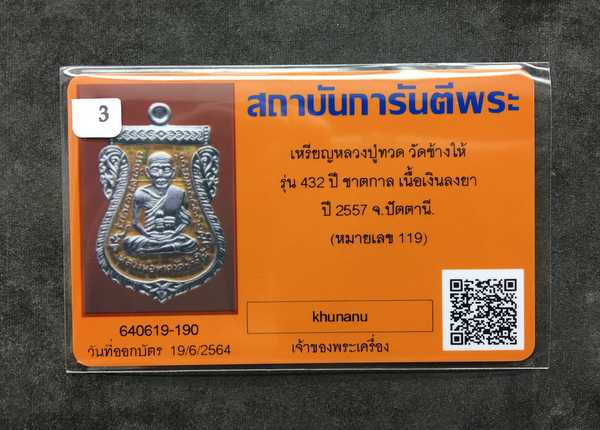 วัดใจ**เหรียญเสมาหลวงพ่อทวด หลังอาจารย์ทิม วัดช้างให้ พิมพ์หน้าเลื่อน โบราณย้อนยุค รุ่น ๔๓๒ ปี ชาตกาล หลวงพ่อทวด เนื้อเงินลงยาราชาวดีสีเหลือง หมายเลข 119 เลียมกันน้ำอย่างดี ไม่มีกล่อง