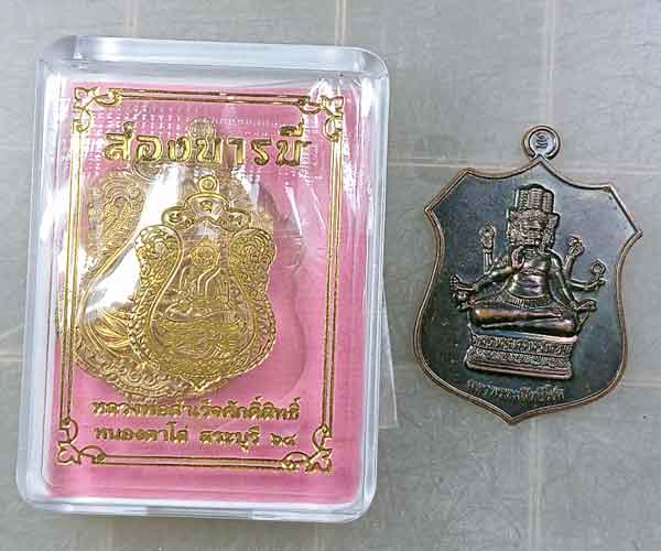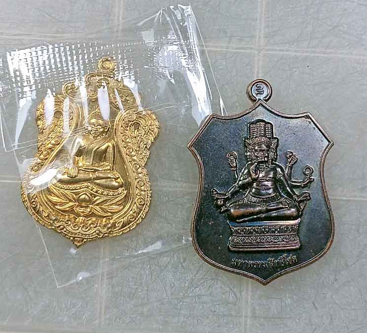 เหรียญสองบารมี หลวงพ่อสำเร็จศักดิ์สิทธิ์ วัดหนองตาโล่ สระบุรี ปี64 + เหรียญมหาพรหมสิทธิโชค พระครูปลัดวิชัย วัดสันติวิหาร สระบุรี ปี60 |