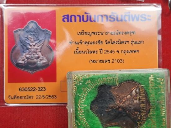 ลงใหม่เจอเคาะเล่น เหรียญพระนารายณ์ทรงครุฑฯ เนื้อนวะ เจ้าคุณธงชัย วัดไตรมิตรฯ 2545