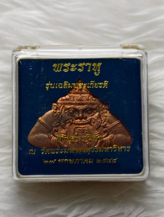 เคาะเดียวแดง พระราหู ขนาด3 ซม เนื้อทองแดง หมายเลข 4617 รุ่นเฉลิมพระเกียรติ ปี2548 จัดสร้างโดยวัดมหาธาตุวรมหาวิหาร จังหวัดนครศรีธรรมราช สวยๆไม่ผ่านการใช้เก่าเก็บ |