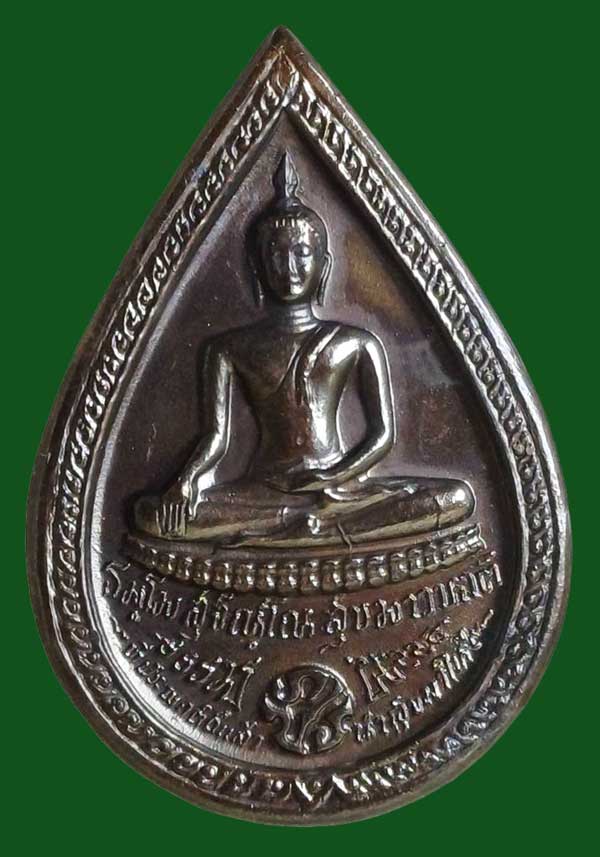 เหรียญหยดน้ำหลังพระพุทธเนื้อนวะโลหะ ปี 2525 หลวงปู่แหวน สุจิณฺโณ วัดดอยแม่ปั๋ง อ.พร้าว จ.เชียงใหม่ สมโภชน์ครบ 200 กรุงรัตนโกสินทร์ จัดสร้างโดยกรมธนารักษ์