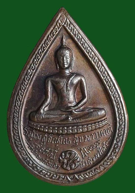 เหรียญหยดน้ำหลังพระพุทธเนื้อนวะโลหะ ปี 2525 หลวงปู่แหวน สุจิณฺโณ วัดดอยแม่ปั๋ง อ.พร้าว จ.เชียงใหม่ สมโภชน์ครบ 200 กรุงรัตนโกสินทร์ จัดสร้างโดยกรมธนารักษ์