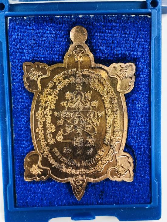 เหรียญพญาเต่าเรือน168 รวยทางเดียว หลวงพ่อสิน วัดระหารใหญ่ จ.ระยอง ชุดกรรมการลุ้นโชค เนื้อนวะลงยาจีวร ชมพู ม่วง ตีนน้ำเงิน หมายเลข 19 พร้อมกล่อง