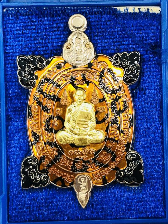 เหรียญพญาเต่าเรือน168 รวยทางเดียว หลวงพ่อสิน วัดระหารใหญ่ จ.ระยอง ชุดกรรมการลุ้นโชค เนื้ออัลปาก้าหน้ากากทองทิพย์ ลงยาลายเสือ ตีนดำ หมายเลข 63 พร้อมกล่อง