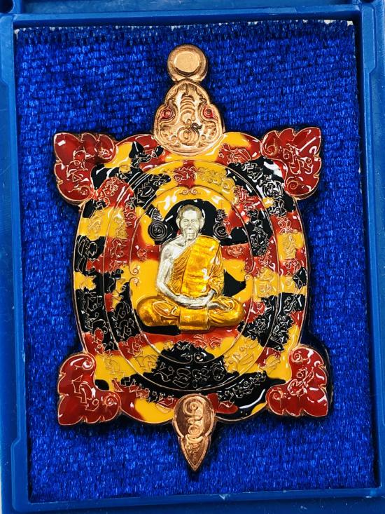เหรียญพญาเต่าเรือน168 รวยทางเดียว หลวงพ่อสิน วัดระหารใหญ่ จ.ระยอง ชุดกรรมการลุ้นโชค เนื้อทองแดงหน้ากากเงิน ลงยาจีวร ลายพรางเหลืองแดงส้ม ตีนแดง หมายเลขแม่ทัพ เลข 1 พร้อมกล่อง