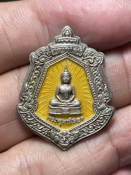 เหรียญหลวงพ่อโสธรประจำตระกูล เนื้อเงิน ลงยาเหลืองสวยเดิมๆคับ |