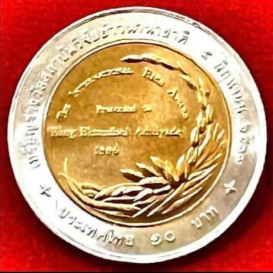 เหรียญ 10 บาทสองสีที่ระลึกเหรียญรางวัลสถาบันวิจัยข้าวนานาชาติ ยกถุง 100 เหรียญ อยู่ในถุงผ้าเดิมๆจากกรมธนารักษ์ ยังไม่เคยเปิดปากถุง สวยงามหายากน่าสะสม