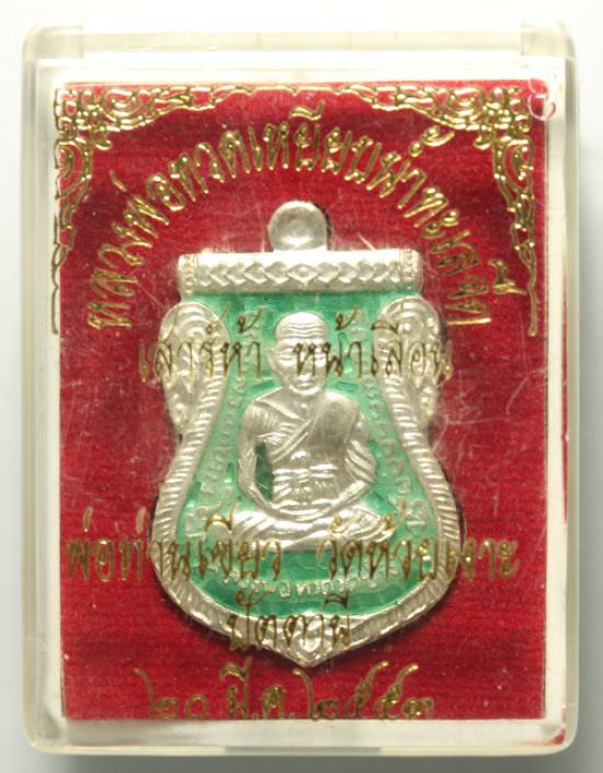 เหรียญหน้าเลื่อน พ่อท่านเขียว วัดห้วยเงาะ รุ่นเสาร์5 หน้าเลื่อน ปี53 เนื้อเงิน ลงยาสีเขียว งานวัดจัดสร้าง สร้างน้อยหายากมาก พุทธคุณเป็นที่ประจักษ์