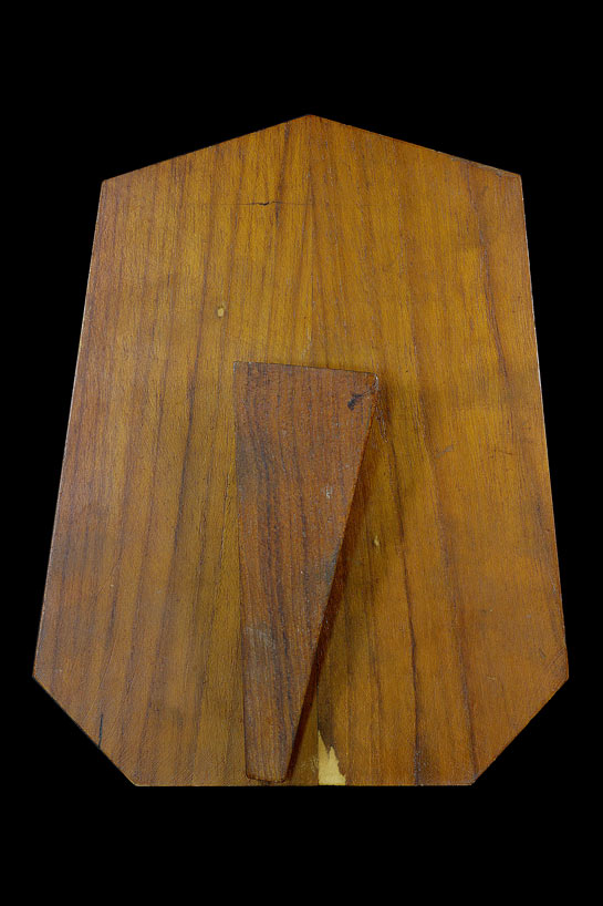 โล่รางวัลชนะเลิศงานประกวดพระเครื่อง ( ขนาด 5 x 6 นิ้ว ) ปลุกเสกโดย หลวงพ่อคูณ ( แผ่นไม้ , ทองเหลืองสกรีนตัวหนังสือ , ติดเหรียญ เฮงคูณเฮง 8 ทิศ และ เหรียญธรรมจักร ) พ.ศ.2541 ** 1 **