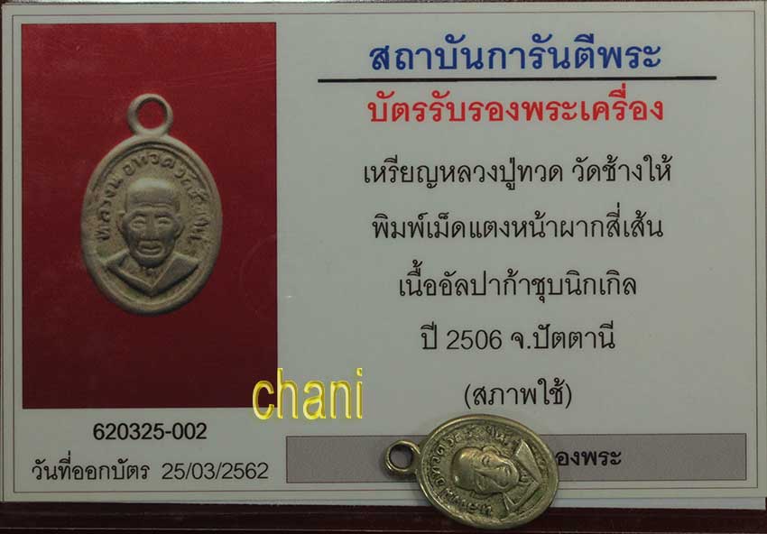 เหรียญ หลวงปู่ทวด วัดช้างให้ พิมพ์เม็ดแตงหน้าผากสี่เส้น นิยม เนื้ออัลปาก้า ปี2506 จ.ปัตตานี สภาพกำลังน่ารักน่าใช้หายาก พร้อมบัตรรับรองพระแท้จากจีพระอุ่นใจได้ ไม่ต้องลุ้นค่ะ