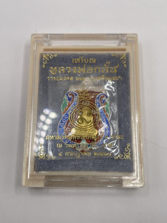 เหรียญหลวงพ่อกลั่น วาระมงคล 666 กรุงศรีอยุธยา มหามงคลพุทธาภิเษก 5 วาระ วัดพระญาติการาม ปี 60 เนื้อเงินลงยาหน้ากากทองคำ |