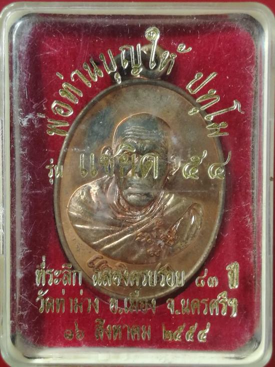 เหรียญแซยิด ๕๔ พ่อท่านบุญให้ วัดท่าม่วง จ.นครศรีธรรมราช ฉลองครบรอบ ๘๓ ปี ตอกโค๊ต บุญ. พร้อมกล่อง