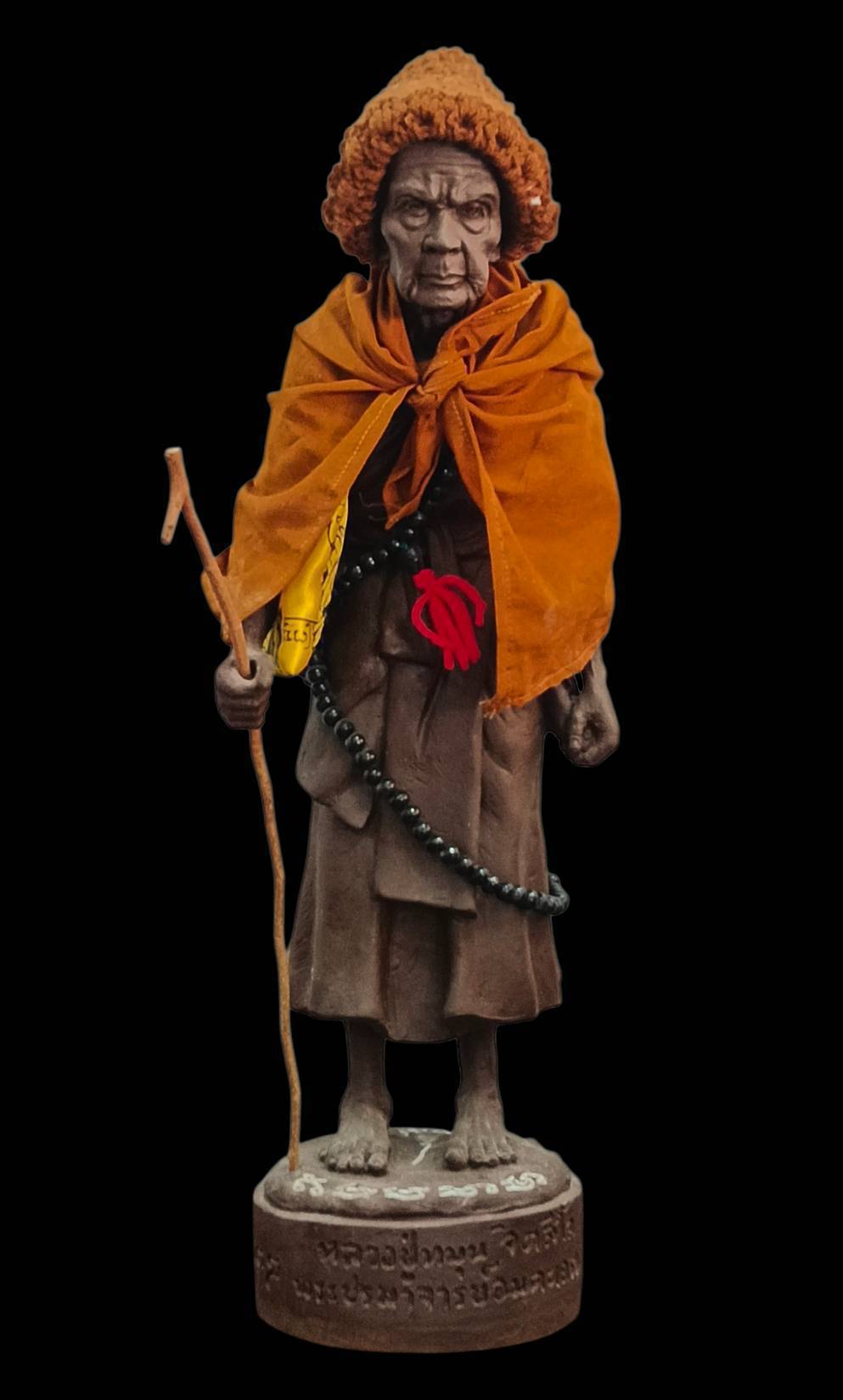 รูปเหมือนบูชา หลวงปู่หมุน ฐิตสีโล วัดบ้านจาน จ.ศรีสะเกษ ปี 2556 รุ่น พระดี ศรีสะเกษ เนื้อเหล็กน้ำพี้ สร้างจำนวน 169 องค์ องค์นี้หมายเลข 65 ความสูงวัดจากฐาน 19 นิ้ว