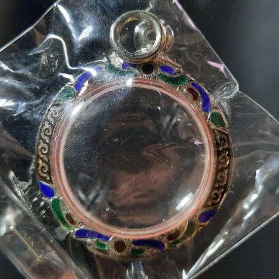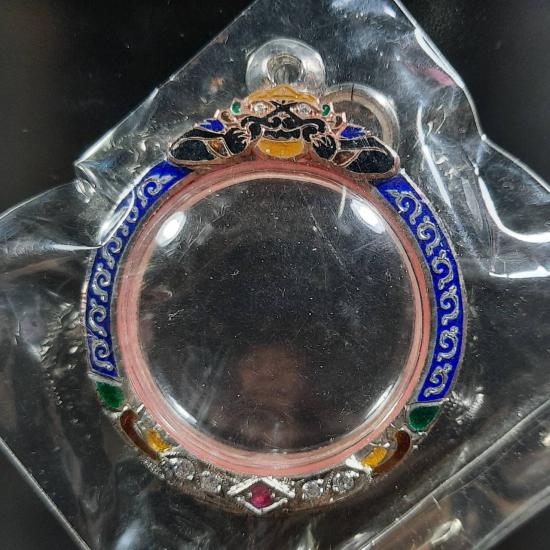 ตลับเงินแท้สั่งทำพิเศษ แกะลายลงยาฝังพลอย ใส่พระเหรียญกลมหรือเหรียญจตุคาม หน้าจอกว้าง 3.2 ซม.สูง 3.2 ซม. สภาพสวยเดิม บานพับแข็งแรง ห่วงครบ ไม่เคยใช้งาน