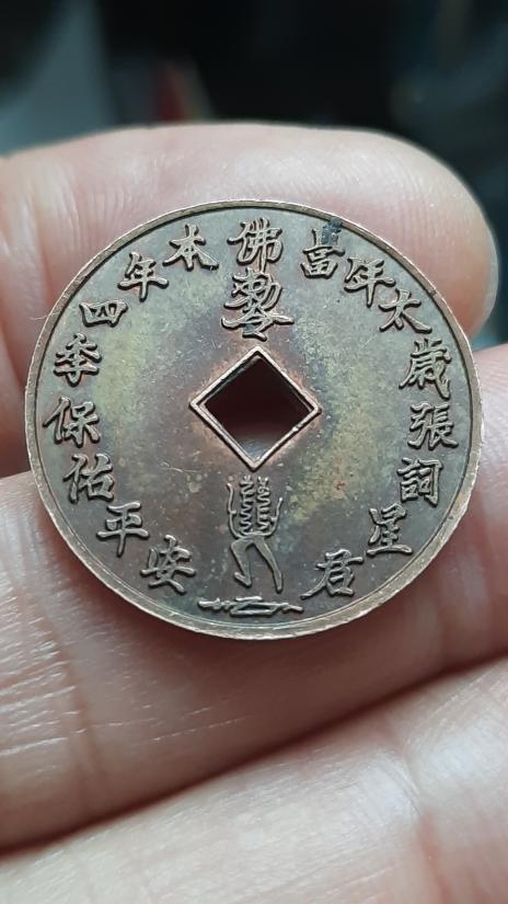 เหรียญเทพเจ้าคุ้มครองดวงชะตา(ไท้ส่วยเอี๊ย) วัดจีนประชาสโมสร(เล่งฮกยี่) ปี2557 ขนาด2.5ซม. |