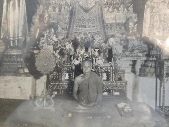 รูปถ่ายหลวงพ่อสด วัดปากน้ำ นั่งในโบสถ์บานใหญ่ 11นิ้ว ห้องภาพศุภลักษณ์ นิยม ทันหลวงพ่อ พร้อมกรอบโบราณ คลาสสิค