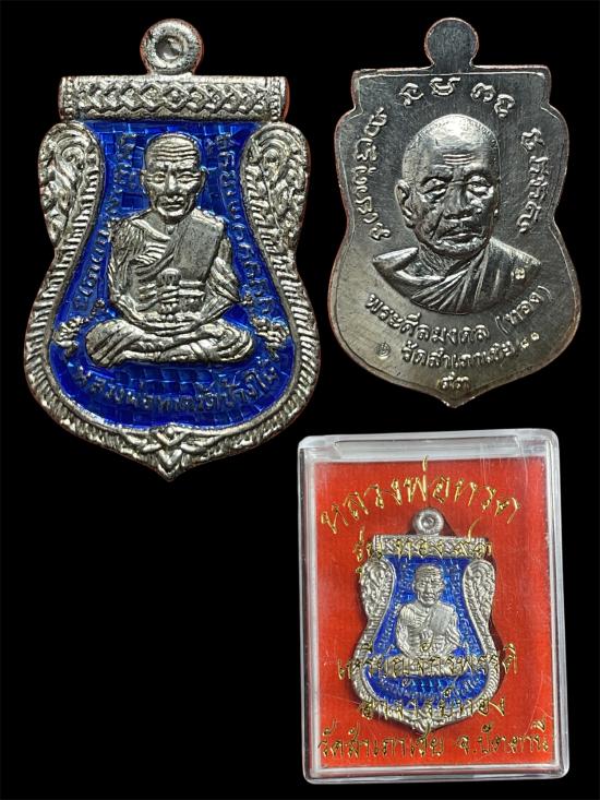 เหรียญเสมา.หลวงพ่อทวด รุ่นทอง 93 อาจารย์ทอง วัดสำเภาเชย ปี 2553 พิมพ์หน้าเลื่อนหลังเลื่อน (พิมพ์ใหญ่) เนื้อเงินลงยาสีน้ำเงิน หมายเลข 81