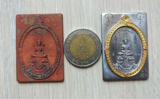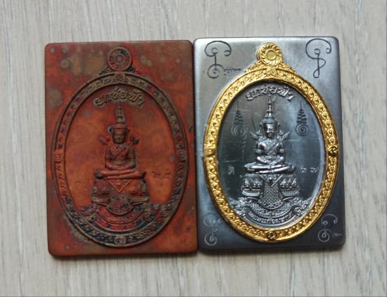 วัดใจเคาะเดียวแดงจ้า เหรียญสี่เหลี่ยมพระแก้วมรกต ออกวัดท้ายน้ำ เนื้อตะปูสังฆมานร+เนื้อตะกั่ว ตามรูป เคาะเดียวแดงจ้า