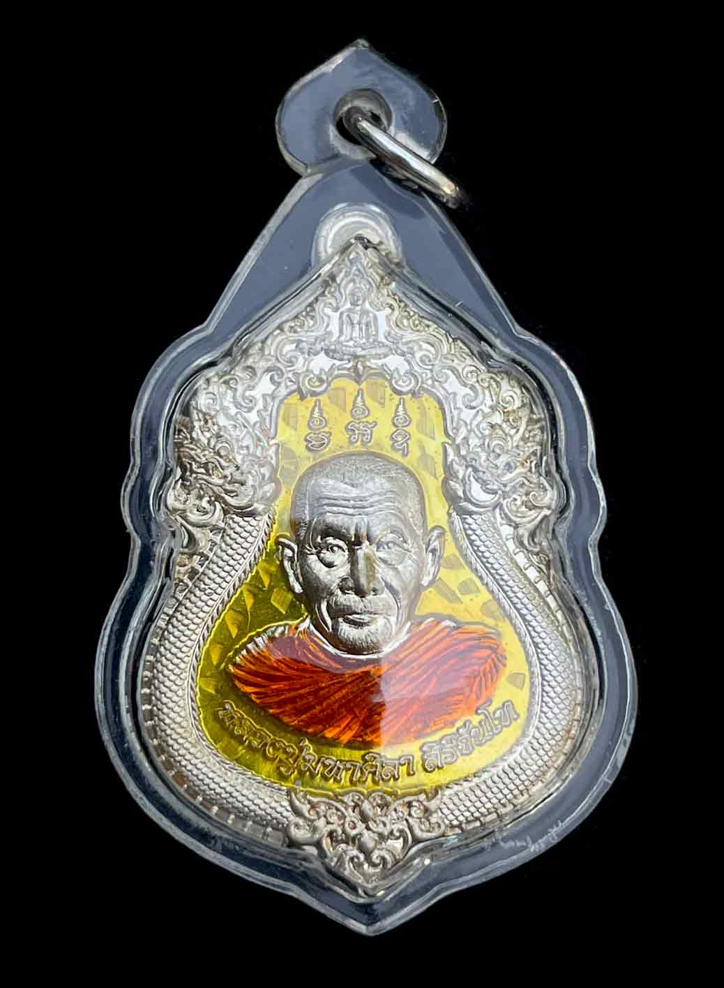 วัดใจ เหรียญ มหาสมปรารถนา รุ่น 1 หลวงปู่ศิลา สิริจันโท วัดโพธิ์ศรีสะอาด จ.กาฬสินธุ์ เนื้ออัลปาก้าลงยาสีเหลือง เลี่ยมพลาสติก สวยงาม |