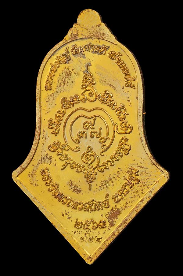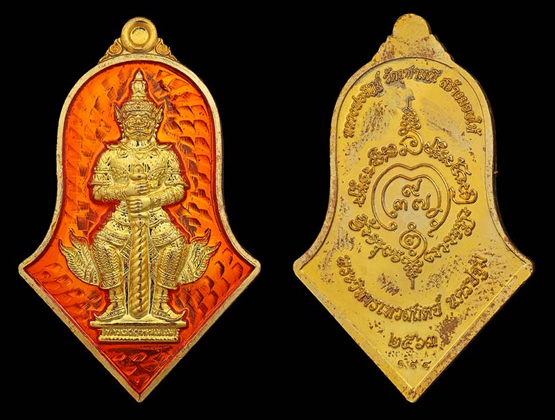เหรียญท้าวเวสสุวรรณ ทราวดีศรีสุพรรณภูมิ พิมพ์จำปีเล็ก มหาชนวนกาหลั่ยทองลงยาส้ม