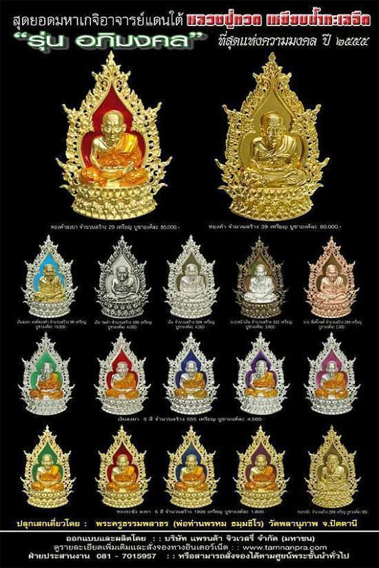 วัตถุมงคลสร้างปีมังกรทอง 2555 "หลวงปู่ทวดเหยียบน้ำทะเลจืด รุ่นอภิมงคล" ครั้งแรกของการจัดสร้างพิมพ์เตารีดฉลุ ยกองค์ แบบประกอบ 3 ชิ้น ออกแบบและประยุกต์จากหลวงปู่ทวดพิมพ์เตารีดรุ่นแรกๆ และเพิ่มให้มีลวดลายที่วิจิตรงดงาม มีเอกลักษณ์เฉพาะตัว ผสมผสานศาสตร์และศิลป์ได้อย่างลงตัว ส่วนด้านหลังตรงกลางเป็นรูปเจดีย์วัดช้างให้ จ.ปัตตานี ด้านข้างซ้าย-ขวา เป็นคาถาบูชาหลวงปู่ทวดภาษาบาลี อ่านว่า "นะโม โพธิสัตโต อาคันติมายะ อิติ ภะคะวา" ด้านล่างมีรูป "ช้าง" ซึ่งเป็นสัญลักษณ์ของวัดช้างให้ และมีชื่อหลวงพ่อพรหม ธมมฺธีโธ อยู่ด้านล่าง วัตถุมงคลรุ่นนี้ทุกองค์จะมีโค้ดและหมายเลขกำกับ ออกแบบและผลิตโดยบริษัทแพรนด้า จิวเวลรี่ จำกัด (มหาชน) ผู้ผลิต (ทองพรีม่า โกลด์) และเป็ผู้ผลิตและจำหน่ายเครื่องประดับและอัญมณีชั้นนำของโลก ซึ่งมีเทคโนโลยีการผลิตที่ทันสมัย ช่างผู้ชำนาญในการแกะต้นแบบ และการตรวจสอบชิ้นงานอย่างละเอียดมีมาตรฐาน ทำให้ผลงานที่ออกมามีมาตรฐานสูง วัตถุมงคลแต่ละรุ่นที่ผลิตออกมาจึงได้รับความนิยมสูงแทบทุกรุ่น "หลวงปู่ทวด รุ่นอภิมงคล" อธิษฐานจิตปลุกเสกเดี่ยว โดย พระครูธรรมพลาธร หรือพ่อท่านพรหม ธัมมธีโร พระเกจิอาจารย์ชื่อดังแห่งวัดพลานุภาพ จ.ปัตตานี จุดประสงค์ เพื่อสมทบทุนสร้างศาลาการเปรียญ วัดพลานุภาพ และซ่อมแซมเสนาสนะต่างๆ ภายในวัดพลานุภาพ เมื่อวันที่ 7 มี.ค.2555 พ่อท่านพรหมได้มอบแผ่นจารอักขระเงิน, ทอง, ทองแดง เพื่อนำมาหลอมเป็นมวลสาร รวมกับมวลสารอื่นๆ กล่าวสำหรับ พ่อท่านพรหมท่านมีเกียรติคุณและบารมีของท่านเริ่มโด่งดังขจรไปทั่วมากยิ่งขึ้น สืบเนื่องมาจากวัตถุมงคลที่ท่านได้แจกให้กับชาวบ้านและเหล่าทหารใน 3 จังหวัดชายแดนภาคใต้ เพื่อนำไปบูชาติดตัวได้ก่อเกิดประสบการณ์ให้เห็นเป็นที่ประจักษ์ในหลายๆ ด้านอย่างเหลือเชื่อ เช่น ยิงไม่เข้า ยิงไม่ออก โดนขว้างระเบิดแล้วไม่ได้รับบาดเจ็บใดๆ เลย แม้กระทั่งบางรายโดนฟ้าผ่าเข้าอย่างจังก็ยังมีชีวิตรอดมาได้อย่างปลอดภัย ส่วนเรื่องที่โด่งดังมากที่สุด ก็คือ เรื่องที่ทหารแห่มาที่วัดกันเป็นจำนวนมาก เพื่อมาขอรับวัตถุมงคลจากท่านพร้อมกับเล่าให้ฟังว่า มีเพื่อนทหารท่านหนึ่งถูกยิงหลายนัดแต่ไม่เข้า ในตัวมีวัตถุมงคลของพ่อท่านพรหมเพียงชิ้นเดียวเท่านั้น