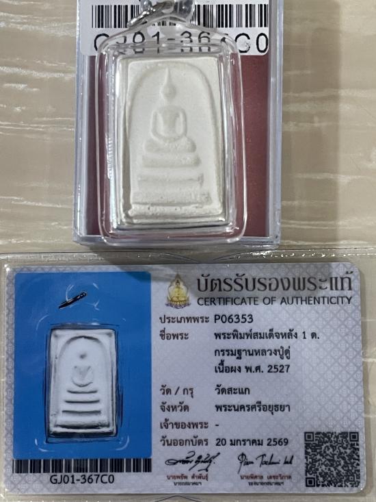 หลังจีวรหลวงปู่ดู่ พิเศษ หลัง1ด หายาก สร้างปี 2527 รับประกันพระแท้ ดูง่าย สวยสมบูรณ์ไม่หักไม่ซ่อม พร้อมบัตรรับรองพระแท้จากสมาคม พระสมเด็จก้นโอ่ง ปี 2527 หลวงปู่ดู่ปลุกเสกทุกวันกระทั่งท่านมรณภาพปี2533 (ผ่านพิธีเปิดสามโลก,รุ่นเปิดโลกปี2532 มาด้วย) พระในโอ่งนี่ เป็นพระผงกรรมฐาน ที่หลวงปู่ดู่เขียนลบกระดาน (ผมเคยอ่านประวัติตอนที่มีพระโบราณมาสอนการลบผงกระดานกับหลวงปู่ดู่ สอนในสมาธิ เมื่อใช้เเท่งชนวนเขียนบนกระดานแล้ว ตบทีเดียวไฟลุกกระดาน ผงทะลุกระดานไปด้านหลัง ต้องลบผงได้ผงแบบนี้จึงถือว่าสำเร็จในการลบผง พระผงหลวงปู่ดู่ ท่านจะเรียกว่าผงกรรมฐาน (เนื่องจากต้องใช้สมาธิขั้นสูง)ท่านเอาผงนี้ผสมกับปูนซีเมนต์ขาว ผสมกับน้ำมนต์ และสร้างเป็นพระผง ปกติท่านบอกว่า ผงนี้ใช้นิดเดียวสัก1ช้อนชา ผสมสร้างพระได้เป็นหมื่นๆองค์ แต่ชุดที่บรรจุในโอ่งนี้ คุณป้าสะอิ้งและพระภิกษุในวัดเป็นผู้ทำถวาย พระบรรจุในโอ่งไม่ใหญ่มาก ได้พระจำนวนไม่กี่พันองค์ แต่ผงกรรมฐานของหลวงปู่ดู่นี่ ใส่ไปเยอะมาก รุ่นนี้จึงถือว่าเป็นรุ่นที่ผสมผงกรรมฐานของหลวงปู่ดู่เยอะที่สุด สร้างพิมพ์หลักๆทั้งหมด16พิมพ์ และยังมีพิมพ์แยกย่อยๆอีก เมื่อหลวงปู่เสกแล้ว จึงบรรจุลงในโอง และใช้ปูนซีเมนต์ขาวผนึกปิดปากโอ่งเอาไว้ และเก็บโอ่งไว้ในกุฏิหลวงปู่ดู่(บริเวณโต๊ะหมู่) หลวงปู่เสกตลอดตั้งแต่ปี2527-2533ท่านมรณภาพ บางองค์จะเป็นหลังเรียบ บางองค์ก็มีตัว ด ไม่ตายตัว แต่พิมพ์จะตายตัว *ที่เรียกกันว่า พระก้นโอ่ง พระปากโอ่ง ก็คือว่า สังเกตุเอาว่าถ้าองค์พระขาวสะอาด จะเป็นพระปากโอ่ง(อาจจะอยู่กลางๆโอ่งถึงปากองค์) พระก้นโอ่ง คือพระที่มีคราบ คล้ายๆคราบดินติดจนเข้าเนื้อพระ(ก้นโอ่งอาจจะไม่สะอาดเมื่อตอนบรรจุ)