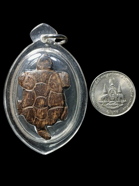รายละเอียด เครื่องลางรูปเต่า เนื้อกะลาแกะ สวยๆ ไม่ทราบที่ เลี่ยมกรอบกันน้ำ พร้อมใช้