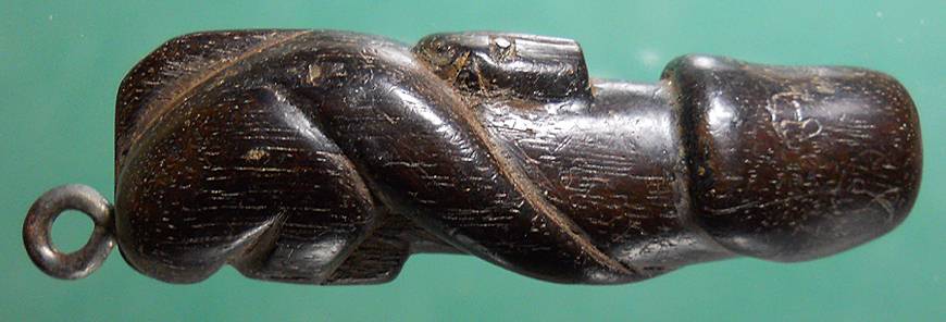 ปลัดขิกหลวงพ่อกลั่น วัดอินทราวาส จ.อ่างทอง ขนาด 3 นิ้ว ยุคกลาง มีรอยจารทั้งตัว ผิวไม้แห้งคร่ำจัดจ้าน |