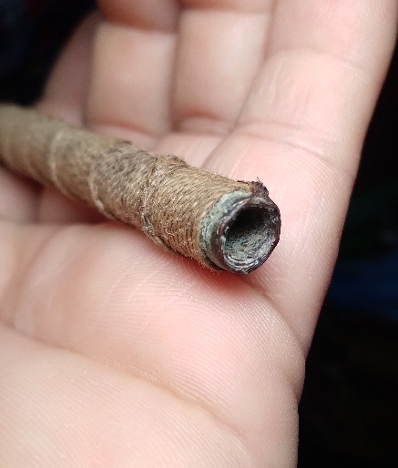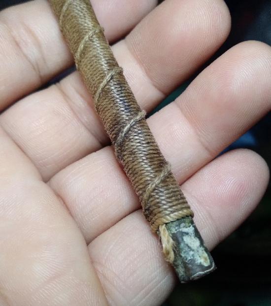 ตะกรุด ถักเชือก เนื้อทองแดง เก่าไม่ทราบที่ ตามสภาพครับ |