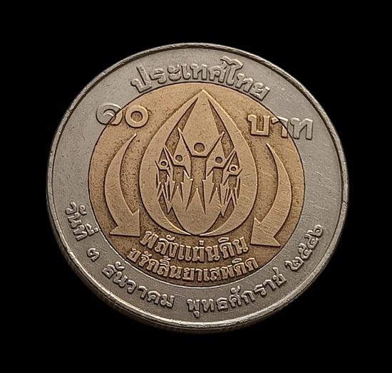 ผลิตน้อย...เหรียญ 10 บาท พลังแผ่นดินขจัดสิ้นยาเสพติด ปี 2546 จำนวน 1 เหรียญ...สวยๆพบเจอค่อนข้างน้อย