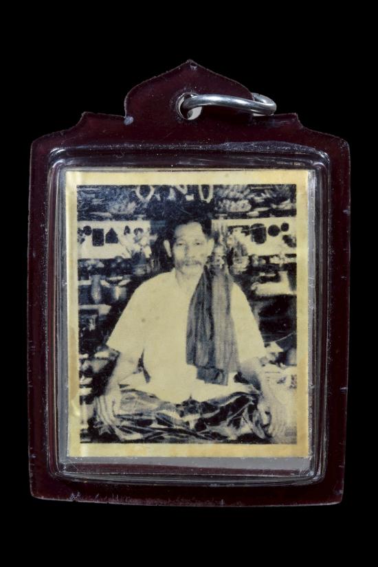 รูปถ่ายของ พ่อเที่ยง น่วมมานา (หรือพระอาจารย์เที่ยง) แห่งสำนัก บ้านมีดี ที่มีด้านหลังเป็น ยันต์หมึกน้ำเ เลี่ยมกันน้ำพร้อมใช้ งิน |