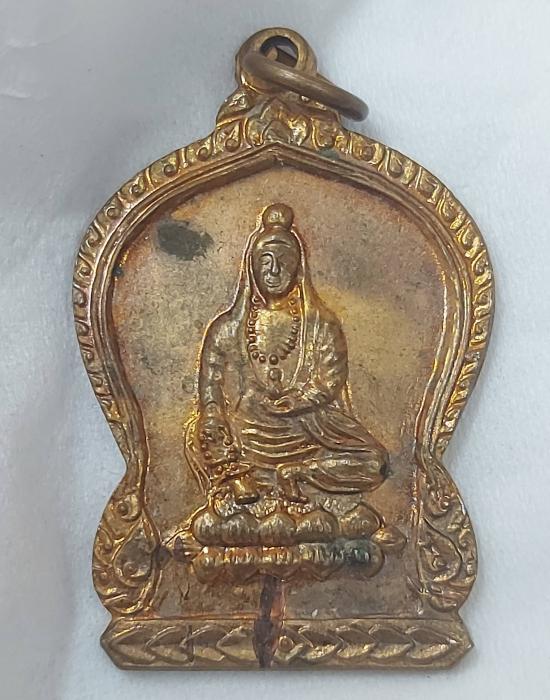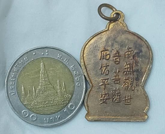 เหรียญพระโพธิสัตว์ เจ้าแม่กวนอิม ทรงเสมา ด้านหลังภาษาจีน ไม่ราบที่ / ไม่ทราบปีสร้าง