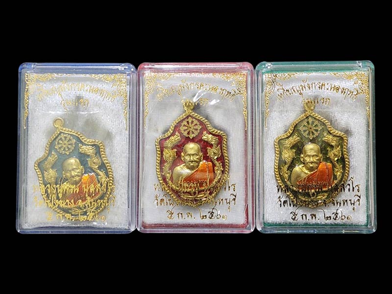 ชุดของขวัญ เหรียญมังกรคู่ รุ่นแรก มังกร คะนองฤทธิ์ หลวงปู่ทวน ปุสฺสวโร วัดโป่งยาง จ.จันทบุรี ทองมังกรลงยา ชุดของขวัญ