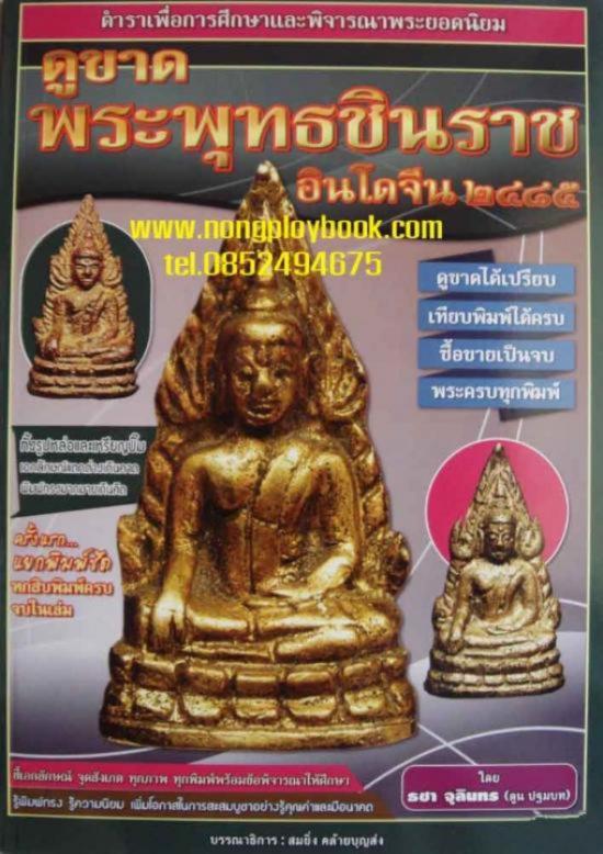 หนังสือพระพุทธชินราช อินโดจีน ตำราเพื่อการพิจารณาพระยอดนิยม ดูขาดได้เปรียบ เทียบพิมพ์ได้ครบ ซื้อขายเป็นจบ พระครบทุกพิมพ์ ทั้งรูปหล่อและเหรียญปั๊มเอกลักษณ์แตกต่างเกินคาด พิมพ์ทรงมากมายเกินคิด ครั้งแรกแยกพิมพ์ชัดหกสิบพิมพ์ครบจบในเล่ม ความหนา 106 หน้าภาพสวยคมชัดทั้งเล่ม